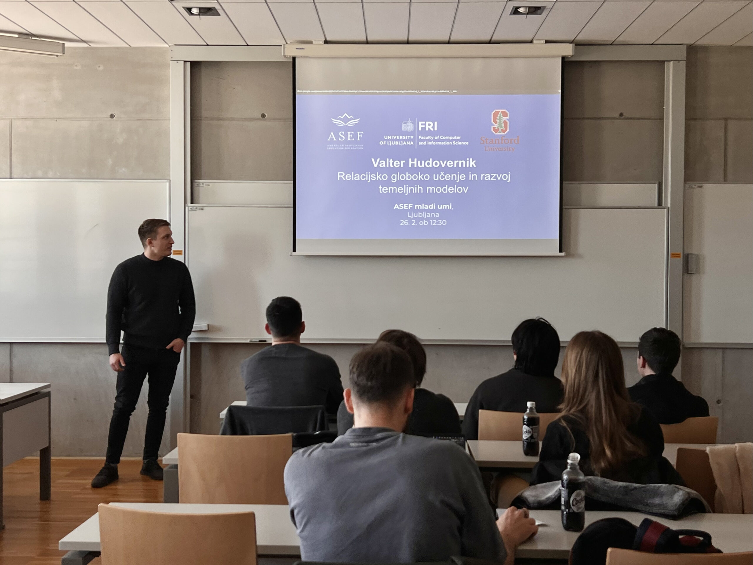 Letošnje prvo poljudnoznanstveno predavanje cikla ASEF mladi umi je 26. februarja potekalo v okviru Izobraževalnih dni na Fakulteti za računalništvo in informatiko (FRI), kjer je gostoval ASEF štipendist generacije 2025 Valter Hudovernik. Kot nekdanji študent FRI, danes zaposlen pri podjetju Kumo AI, se je na fakulteto vrnil s predavanjem o relacijskem globokem učenju ter razvoju temeljnih modelov (foundation models) za strukturirane podatke.