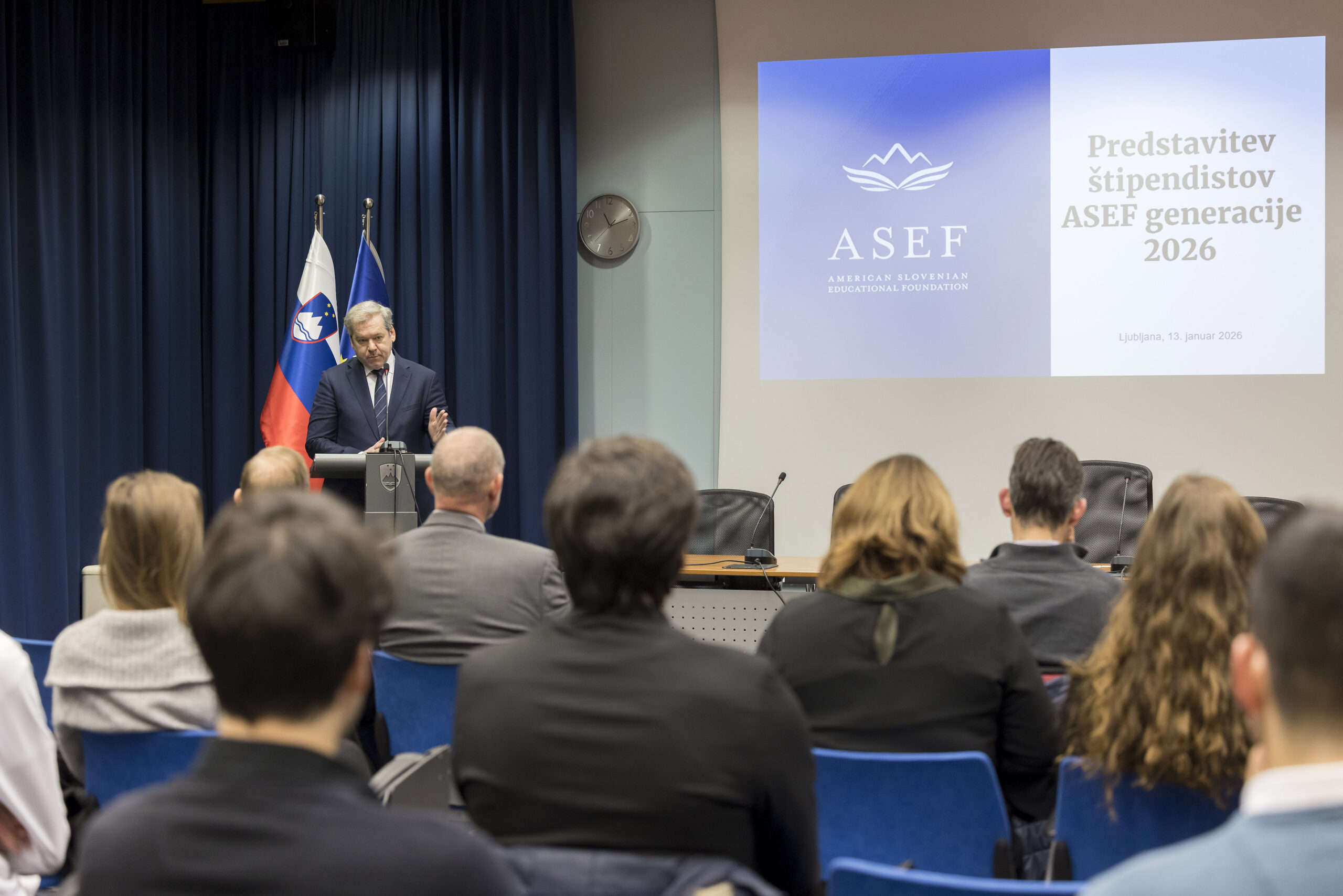 Ljubljana, 13. januar 2026 – Ameriško-slovenska izobraževalna fundacija ASEF je na uradnem sprejemu na Ministrstvu za vzgojo in izobraževanje razglasila novo generacijo štipendistov programa Raziskovanje v tujini. V letu 2026 se bo skupina izbranih talentov odpravila na 10-tedenski raziskovalni obisk na najprestižnejše svetovne univerze, kjer bodo pod mentorstvom uveljavljenih slovenskih profesorjev pridobivali nove znanstvene izkušnje.